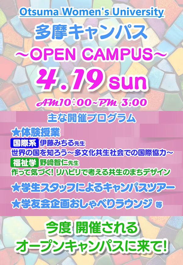 4月19日(日)に開催される人間共生学部オープンキャンパスに向けて、